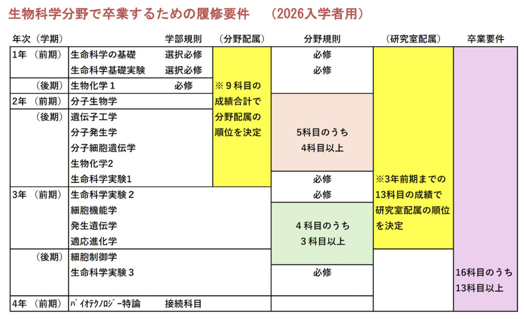 生物科学講座における研究室仮配属および卒業要件について